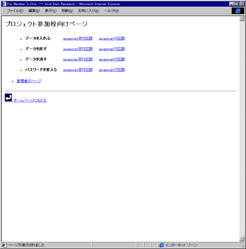参加校がデータを登録するにはデータ登録のページからできる。データ登録のページには参加校を選びやすいようにjavascript対応版と非対応版がある。図 15がそれぞれのページ。