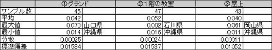 (1)で整理された計測データを平均することによって、共通条件 i) 〜 iii) の計測データを学校(県)単位のデータベースとして構築した。また、付帯情報についてもこれに合わせて追加した。
