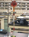 これはアンモニアの噴水実験と同様の装置で、アンモニアの代わりにNO2をフラスコに充填し(図2)、ビーカーにはフェノールフタレイン水溶液ではなくBTB水溶液(図3)に入れ替えた。図4からわかるようにアンモニアの噴水のようにはいかないが、NO2でもビーカーのBTB水溶液がフラスコ内に吸い上げられる様子が確認された。図5は図4の上部拡大図であるが、これからもわかるようにNO2が水に溶けて酸性物質(硝酸)が生成され、フラスコ下方部分のBTB水溶液が緑色(中性)から黄色(酸性)に変わった。この実験からNO2の水への溶解性は大きく、酸性雨の原因物質となりうることを確認できた。