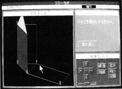 ・自動展開により展開する。 あらかじめ拡大しておいたものを用意し,展開すると画面よりはみ出してしまうものを利用する。 また,このソフトは,同じ立体でも2度目は同じ展開図にならない。このことを利用し展開図の多様さにも気づかせたい。 ・理解できない児童のために画面に入る図形も用意しておく。 |