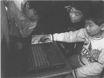 言葉では,何となくはずかしくていやだなと思っている子供にとって,『えもじワープロ』は,文字が絵によって表現されるので抵抗感がなかった。また,にがてな子供にとっても文字が次々と絵に変わり,楽しんで取り組めた。