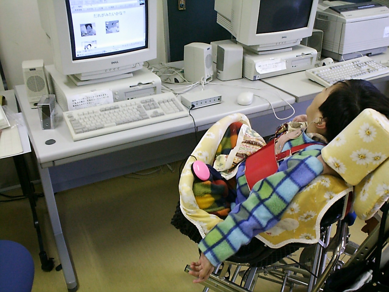 もう一つ重要なことはインターネットの使用に主眼をおくのではなく、インターネットとコンピュータを「道具」として使い、上・下肢の動きを伸ばすことに主眼をおいた点である。これは今までもいわれてきたことであるが、コンピュータやインターネットを目的とするのではなく、手段として利用し問題を解決することが大切である。対象となった生徒にとってもインターネットを利用することが大切なのではなく、自分の残存能力を伸ばすことが大切である。そのための手段としてインターネットを利用できたことは有益であった。この取り組みから他の障害であっても入力機器などのコンピュータ環境を整えれば、有効利用できるという可能性がみえてきた。全ての生徒に有効とはいえないが、障害によっては大変有効に利用できる場合もあると思われる。本生徒の場合も当初の目的の上・下肢の能力の向上にとどまらず、インターネットを見ること自体も趣味としてできるようになるのではないかという可能性もみえてきていた。しかし残念なことにこの生徒は昨年暮れに急逝したため、これ以上の研究を行うことができなくなった。本生徒を対象とした研究はこの時点で終わることとなったが、この成果を基に今後多くの重度重複障害を有する生徒にとって有効なコンピュータ環境とインターネットの利用を考えていきたい。