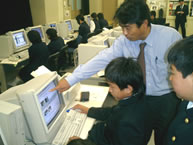45分から50分で研修を行うことができる。先生用テキストには,トラブル対策や留意事項が記載してあり,生徒用のテキストは字数を少なくし,画面イメージを多く使用し,自学自習もできるようにした。 |