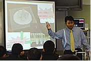実証実験校である御津町立御津中学校に, 10月15日から11月20日までの約1ヶ月間,コンピュータやディジタルカメラなどの情報機器や「見方・考え方を付加したコンテンツ」を活用した授業を支援するインストラクタ(ICT活用授業アシスタント)を派遣。校内研修により,教員のスキル向上を図るとともに,ティームティーチングを実施し,コンピュータ等の操作技能向上を図った。