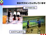 掃除のプロとして「どのくらいの用具を使っているか」「プロが見につけなければならないものは何か」など伝え、産業界に対する興味関心を高める。また、プロが掃除をする時に誰がやってもきれいで、効率よく掃除ができるようにはどうしたらいいのかを紹介する。カーペットのシミ落としの手順。