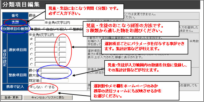 4.2.4 携帯電話からのデータ送信フォームならびにPCでのデータ入力項目設定