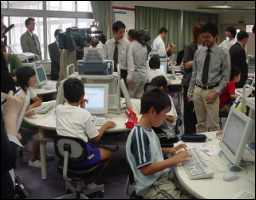 つくば市は平成16年7月よりeラーニング「つくばオンラインスタディ」を導入した。7月14日には,テレビ会議で市内の全小中学校を結んで「開通式」を行い,本校で教育関係者や報道関係者等に向けてこのシステムを利用した授業を公開した。