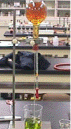これはアンモニアの噴水実験と同様の装置で、アンモニアの代わりにNO2をフラスコに充填し(図2)、ビーカーにはフェノールフタレイン水溶液ではなくBTB水溶液(図3)に入れ替えた。図4からわかるようにアンモニアの噴水のようにはいかないが、NO2でもビーカーのBTB水溶液がフラスコ内に吸い上げられる様子が確認された。図5は図4の上部拡大図であるが、これからもわかるようにNO2が水に溶けて酸性物質(硝酸)が生成され、フラスコ下方部分のBTB水溶液が緑色(中性)から黄色(酸性)に変わった。この実験からNO2の水への溶解性は大きく、酸性雨の原因物質となりうることを確認できた。