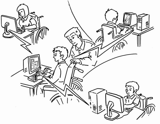 現在の遠隔コミュニケーションの手段は電話が一般的であり,音声言語によるものである。またファックスについてもよく利用されており,聴覚障害者にとってはなくてはならないものとなっている。しかし今後はインターネットの普及により,電子メールなどネットワークを利用したコミュニケーションがより発達してくることが予想される。これは障害を持つ子どもたちにとって,新しいコミュニケーション形態の可能性を示すものである。コミュニケーション手段の多様化が進むと,コミュニケーションをとることが比較的苦手な子どもたちは,個々の実態に応じた手段を選択する幅が広がることになるからである。一言に障害といってもその状態には幅があり,ある障害の状態に対して1つの方法を確保したとしても,他の大部分の障害についてもそのまま適用することは難しい場合が多い。そのため,多くの手段や方法が確保されている必要があるが,ネットワークを利用したコミュニケーションは,その選択の幅を広げるものとして有望であるといえよう。