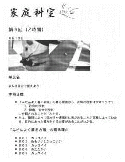 初年度の研究は日々の授業について、家庭科教育について専門に研究している研究室と教育現場 である学校の間で話あいを行なった。毎時間の学習について検討を重ねていくという事は、授業を見つめ直す教材研究そのものであり、授業の質を変えていくことにつながっていったと思う。また現場にいてはなかなか得ることができにくい、新しい家庭科教育の動向についても情報を得ることができたのも大きな成果である。