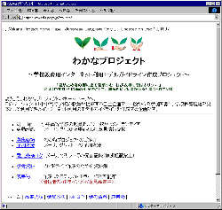 1996年9月より活動開始。平成9年度は新100校プロジェクト自主企画という形態をとって引き続きサーバリソースの供用支援を得て意見情報交換を継続している。