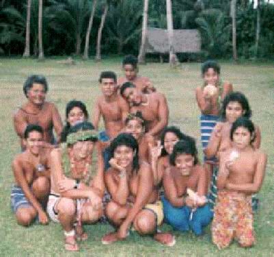このような共同調査の結果,ミクロネシアやハワイの海岸に日本からのゴミが大量に漂着していること,中国やベラルーシ,ロシアなど世界各地で,ゴミによる環境破壊が進んでいることがわかってきた。(上の写真は,ミクロネシア・ウォレアイ島のの仲間たち)