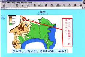 県内の調べ学習を共同で行うに当たって,子どもたちにいかに目的意識を持たせるかが課題となった。そこで,1 学期から「ケナフの観察」を通して,交流を続けてきた横浜市立本町小学校からの「県内のダムのことについて調べているので教えてほしい」という依頼を契機に活動を開始することにした。子どもたちは,地元相模湖の相模ダムについて調べ,テレビ会議で本町小に伝えた。実施した結果,テレビ会議の画面では相手の資料が見にくいことなどから,せっかくまとめたことが十分に伝わらないことがわかった。子どもたちと話し合い,「まとめた資料をホームページ上に公開し,相手校にその資料を見てもらうことで解決できるのではないか」ということになり,さっそく学校のホームページに「相模ダムについて」を作成した。子どもたちは,自分たちのまとめた資料がホームページで公開されたことに満足すると同時に,「他の人に見せるための資料づくり」というものが意識の中に芽生えてきたようである。(「相模ダムについて」図1 )