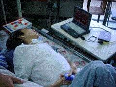 筋力の衰えのために腕の稼働範囲が狭くなり一般的なキーボードでは入力が困難になることや、座ったままの姿勢を保持することが厳しくなることから、マウスやトラックボール等の入力装置とパソコンの画面に表示されるオンスクリーンキーボードを使うことで、ベットに横になった状態でも十分に操作ができるようになった。(写真1)windows95が出てきたことに伴って機能を改善された日本語入力プログラム(IME)により安価に実現できるようになったことも幸いしている。