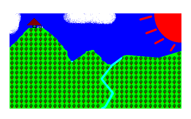 - 青い空とたくさんの木や山が美川村にあってほしいと思い,この作品を作りました。