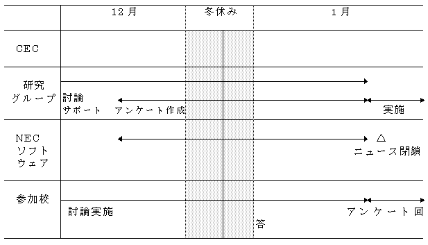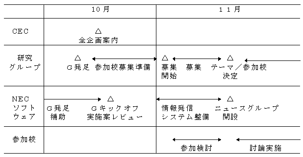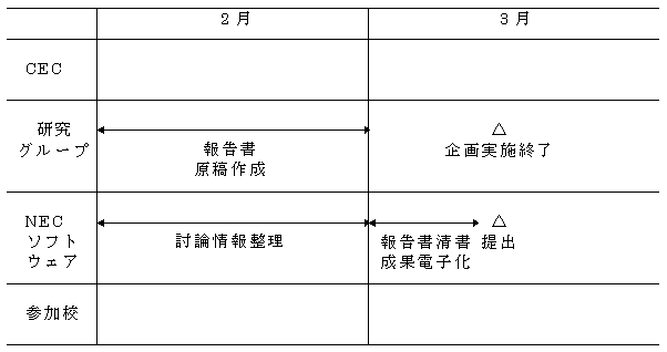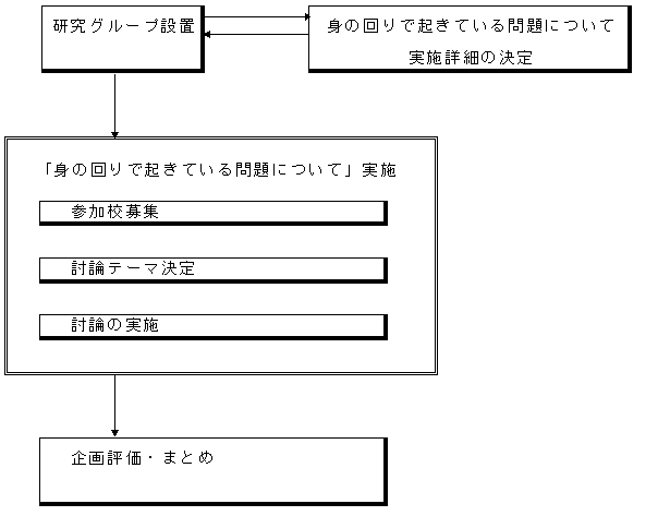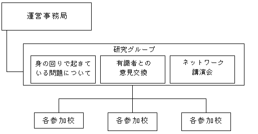企画毎に研究グループを編成し、各々に参加校を募集する。各研究グループにはリーダを置き、5名程度の大学関係者などのメンバで構成されるものとする。 (2)研究グループ 以下に企画毎の最終的な研究グループメンバの一覧を以下に示す。 a)「身の回りの問題について」 東京工学大学の赤堀教授をリーダに全部で5人のメンバとした。