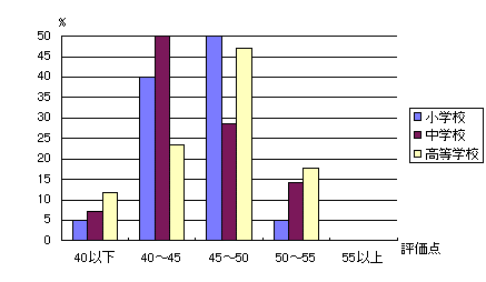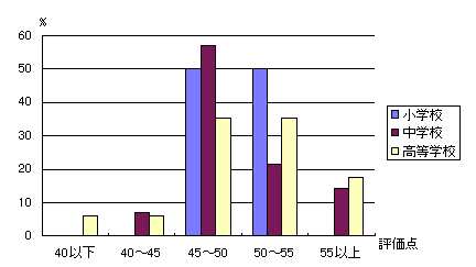 * 項目11も小・中・高ともにかなり低い評価がなされている.項目11はデータの再利用,すなわちネットワーク利用の1つの特徴に関する項目であることから,ネットワークを利用したコンテストでは「だれでも,いつでも,どこからでも」見られるという意識をもって制作する必要があることを示唆している.