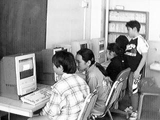 本校には,インターネットに接続されたクライアントは,100校プロジェクトで貸与された1台しかなかった。また,スタンドアロンのパソコンも,3台あるのみであった。そこで,このような状況下で,インターネットをいかに無理なく有効に活用できるかを研究してみた。