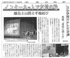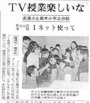 3・4年社会科地域の特色についての調べ学習を進めていく中で、各校のホームページの情報を検索学習し、志道小学校のコンピュータクラブの子どもたちと、加唐小学校の子どもたちが、「商店街で工夫されていること、夢の商店街作りについて」、「加唐パンフレット作りと、漁師さんのくらしについて」について調べ、電子メール・FAX・ホームページ等の情報手段を使って返信。交流を進めていく中で、会って直接話をしてみたいということで、遠隔授業の実施となりました。