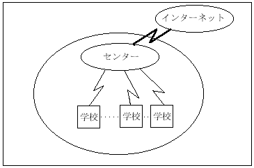 教育センター等がサーバーを管理し、各学校は教育センター等を介しインターネットに接続する。有害情報の対策などの管理面では有効であるが、ホームページの管理等での教育センターの負担が重くなる。